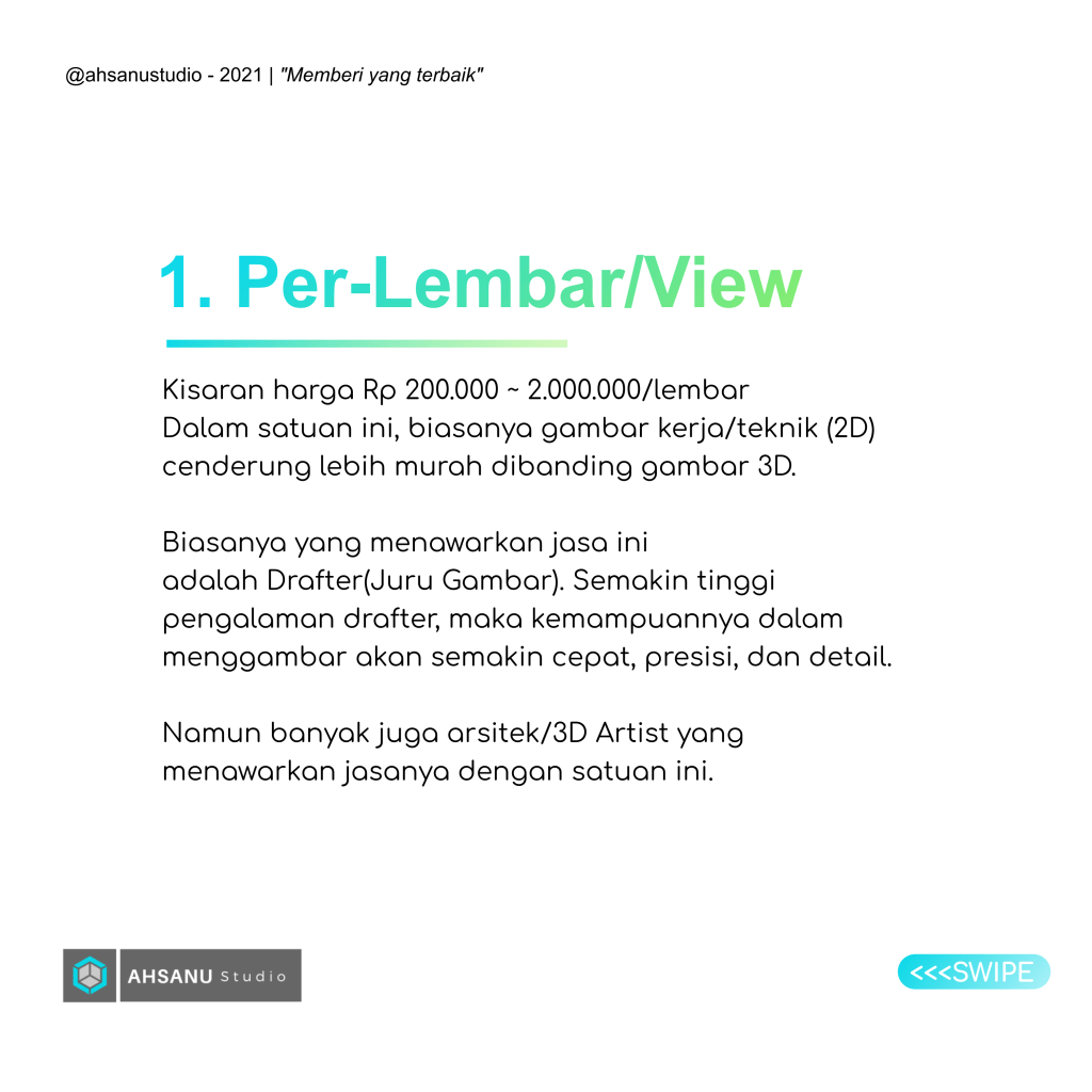 Lalu bagaimana desainer / arsitek menentukan harga jasa mereka? sebagai info tambahan Anda bisa menyimak slide yang berisi skema dan contoh dibawah ini